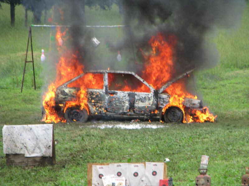 Some hot casings went down a neck and a car died.