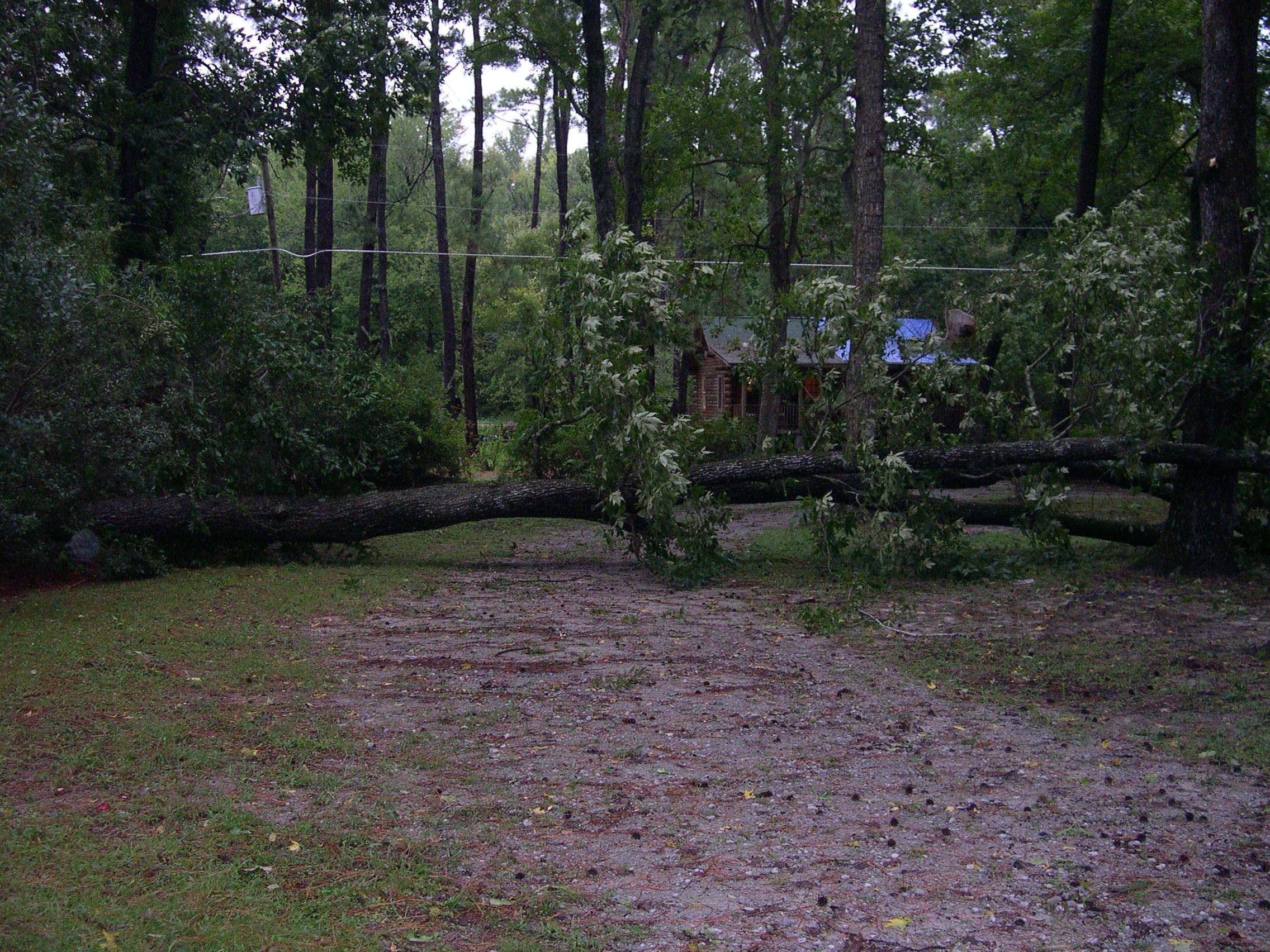 The tree down at the lake house was from hurricane Ernesto. Tree came